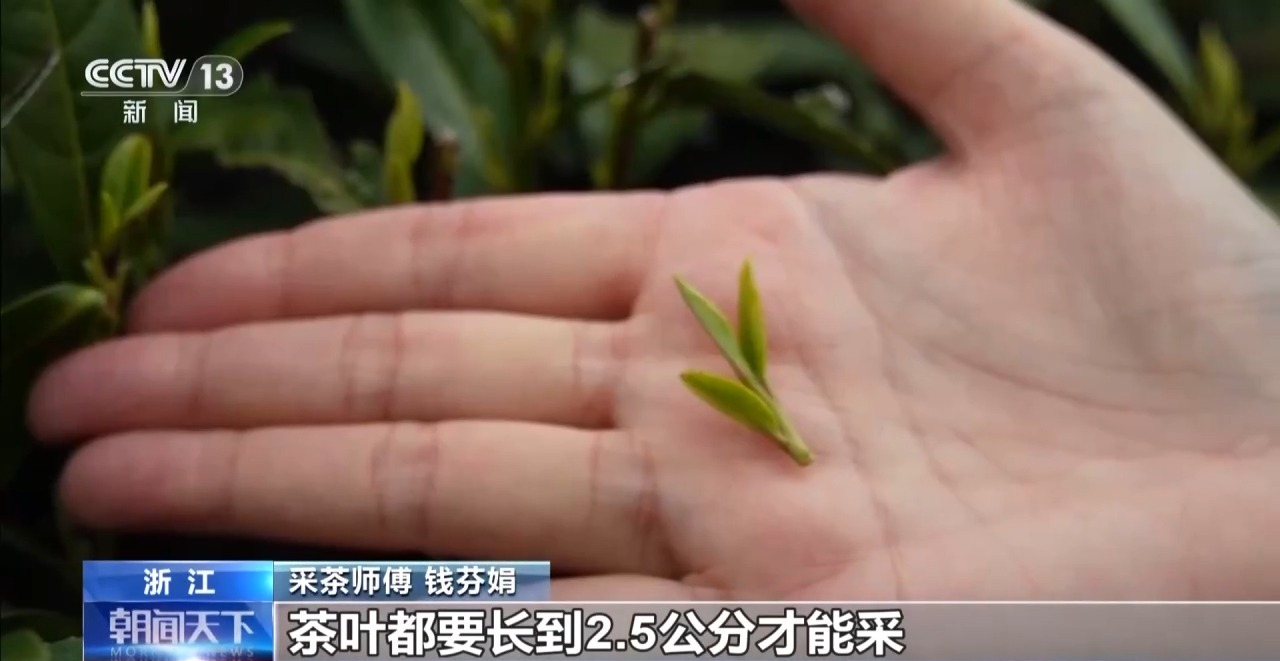 采茶师傅 钱芬娟:采茶的时候下面不能用手去掐,要用手往上面提。茶叶都要长到2.5厘米才能采。