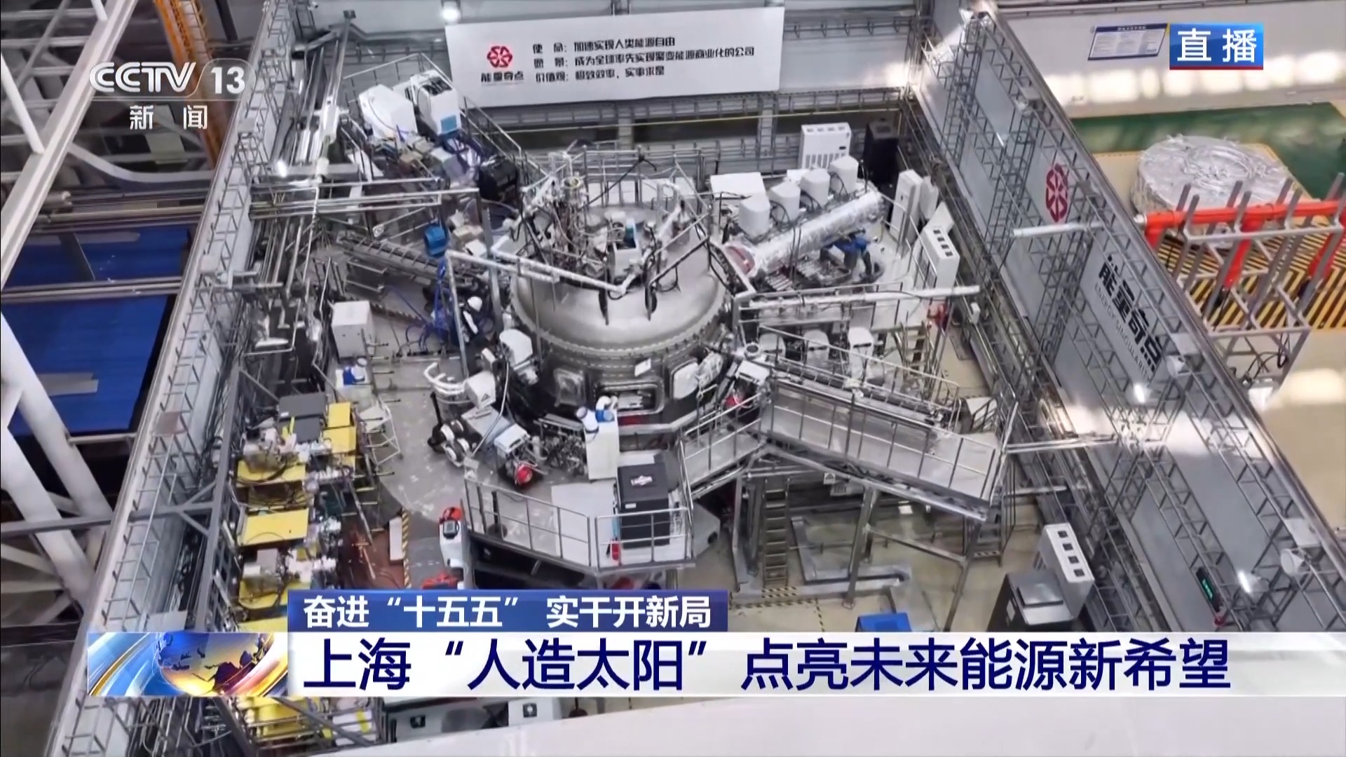 总台记者 陈阳:在上海临港的一间实验厂房,这个“大家伙”就是全球首台全高温超导托卡马克装置——“洪荒70”。就在上个月,它刚刚完成了一项重要突破,实现1337秒的稳态长脉冲运行,也就是连续运行了大概22分钟时间。现在,科研人员正在做的是数据监测和对部分关键部件检查、维修工作,为下一轮实验做准备。