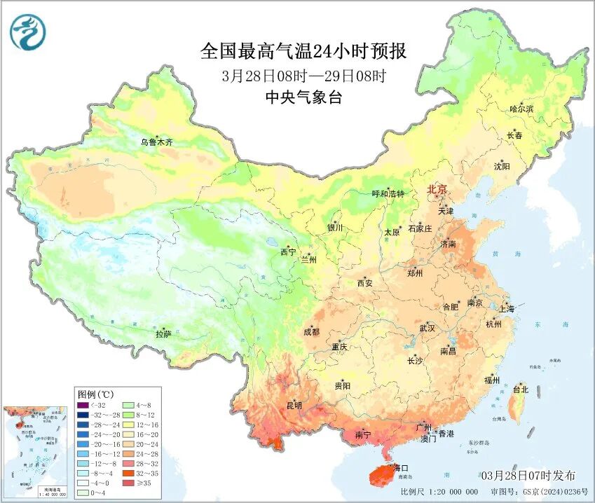 不过,预计4月初还有较强冷空气影响我国,未来南北方气温将起伏波动。像近期气温明显偏高的华北、黄淮一带,月底前后气温将回落到常年同期平均水平附近,或者短暂转为偏低。大城市中,天津今明两天最高气温还在20℃上下,31日将会降到16℃左右。