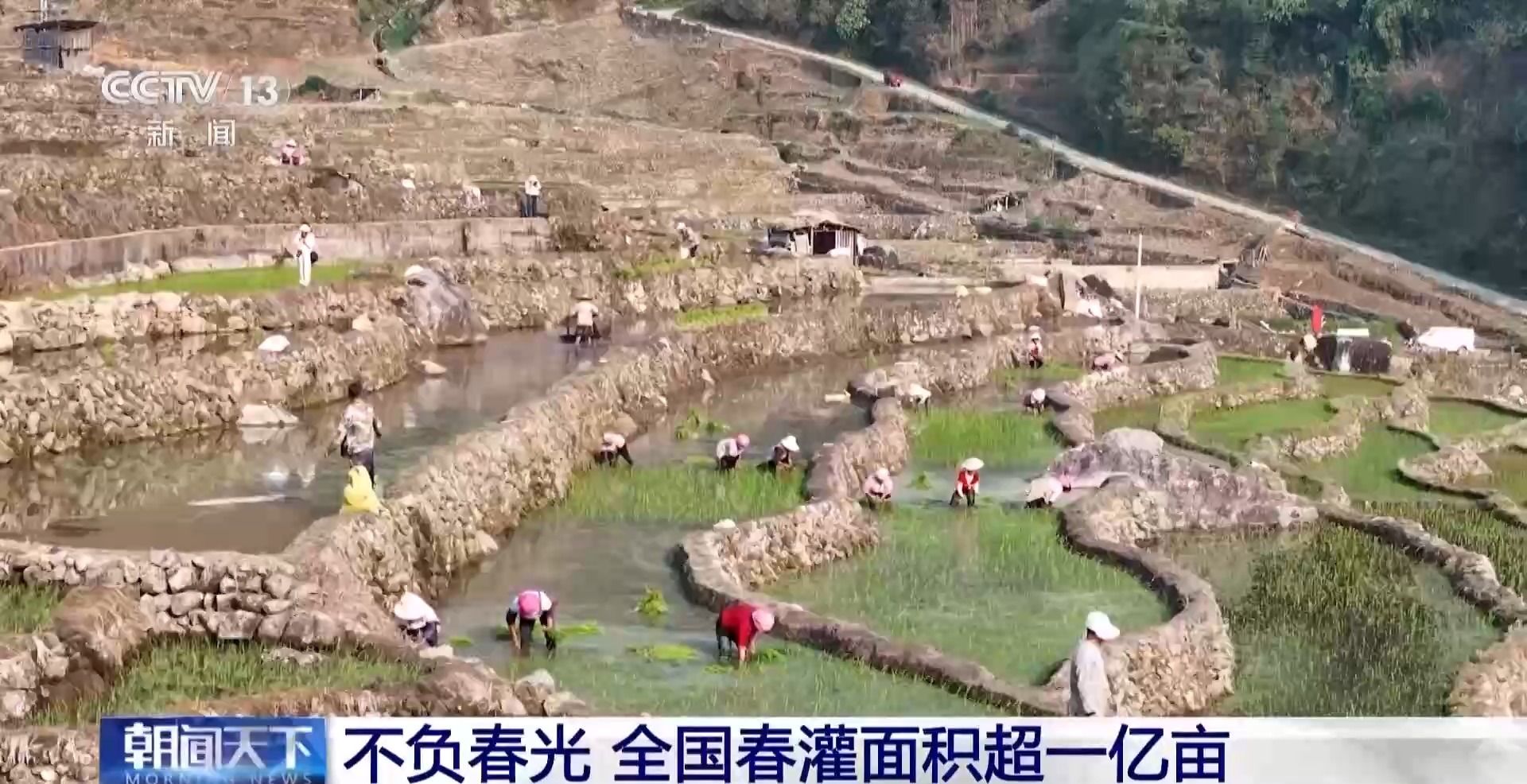 云南14个大型灌区、305个中型灌区已全部启动春灌,灌溉面积超522万亩。在红河,哈尼梯田低海拔地区的农户正抢抓晴好天气,在梯田间开展水稻移栽作业。