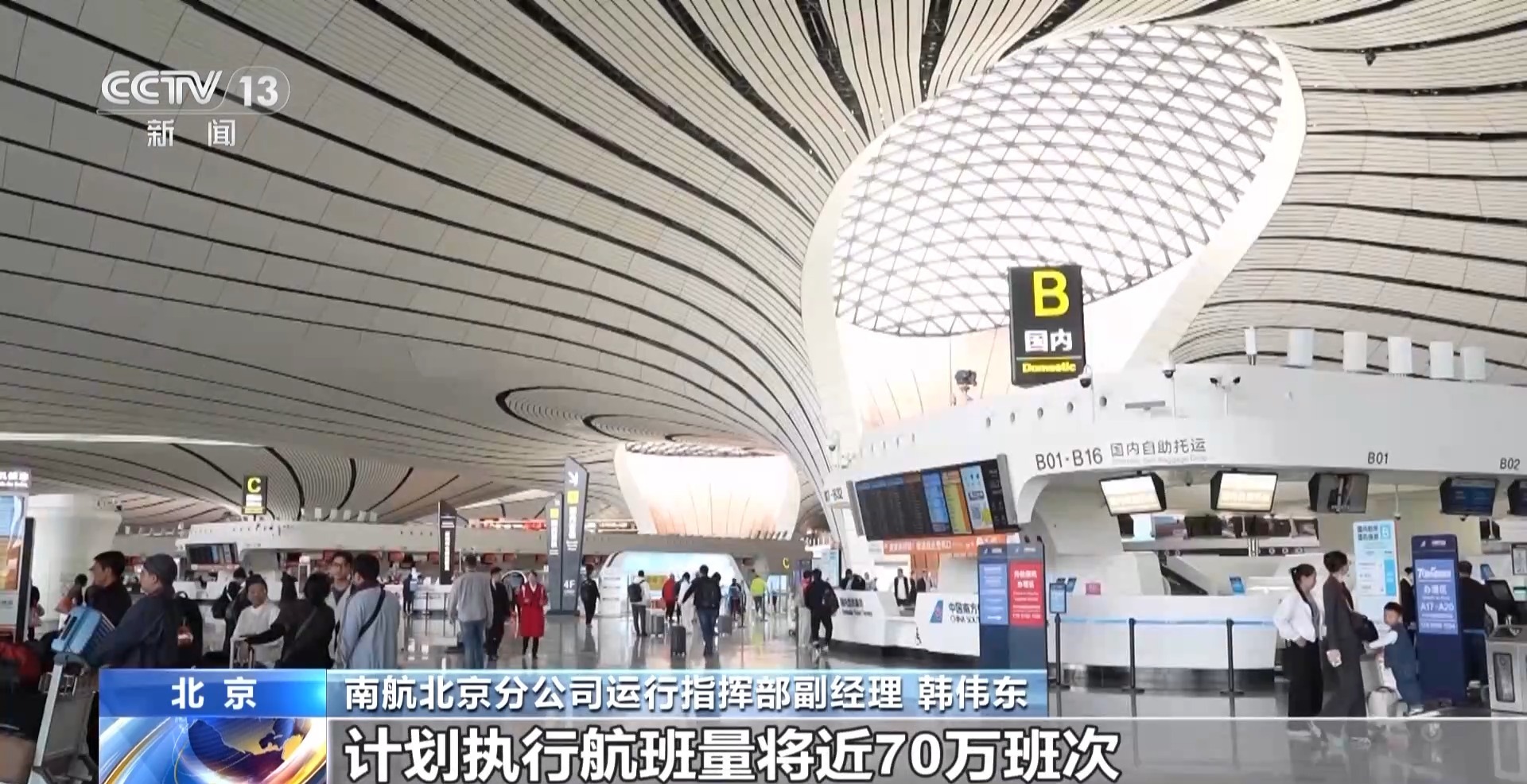南航北京分公司运行指挥部副经理 韩伟东:南航计划在9万余条航线上,计划执行航班量将近70万班次,我们还对一些航线布局和班次进行了调整。新开航了北京大兴到伊宁、库尔勒和泉州的航线,加密了北京大兴到宁波、温州的航线班次。