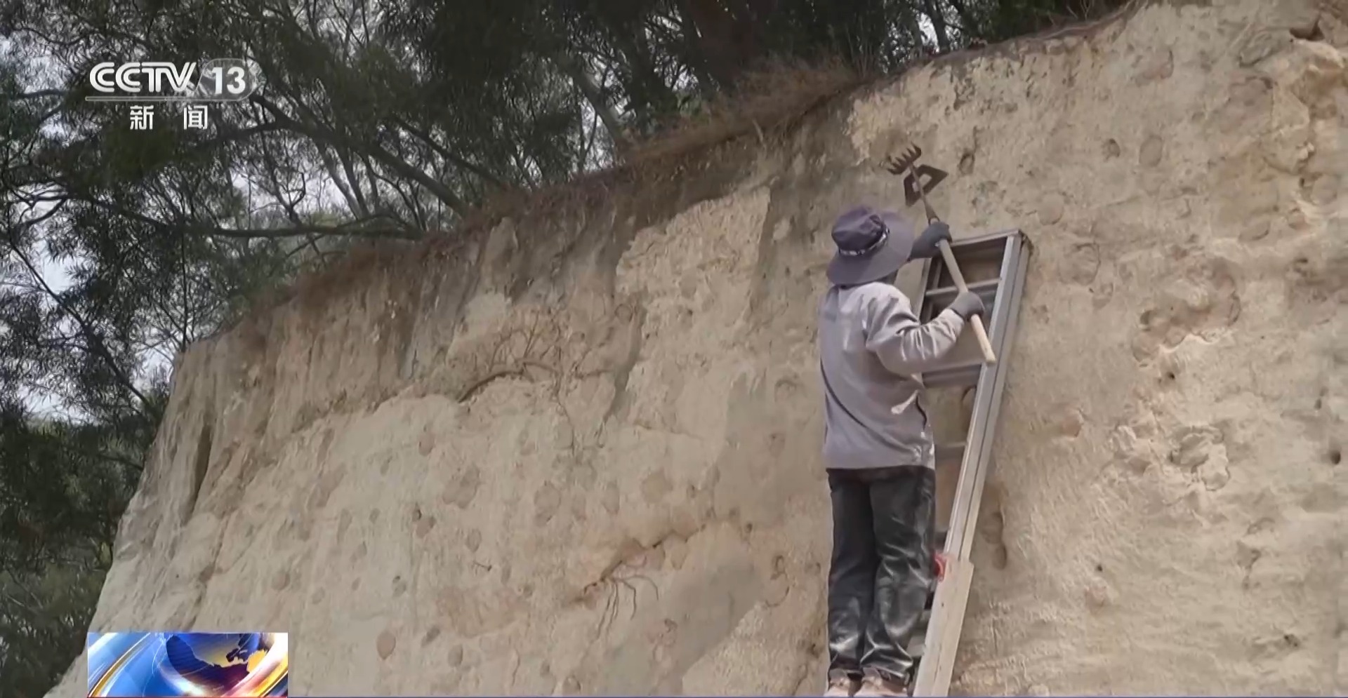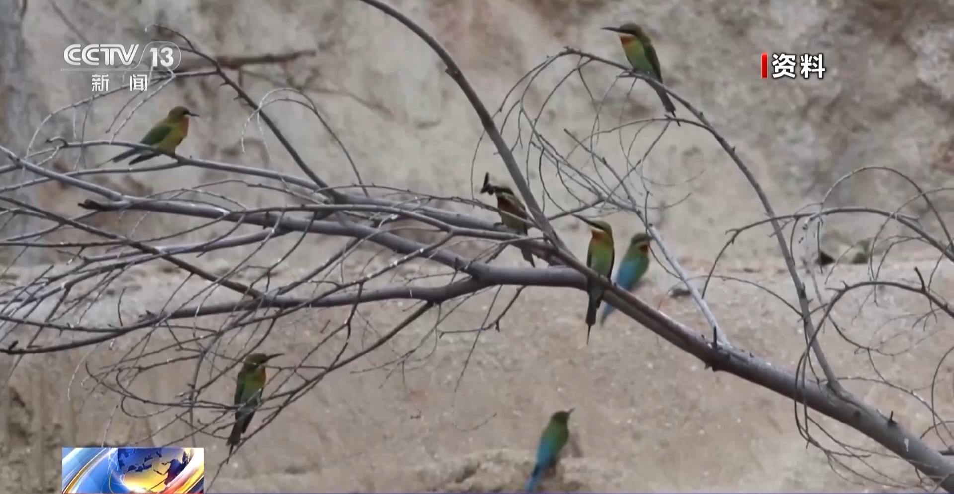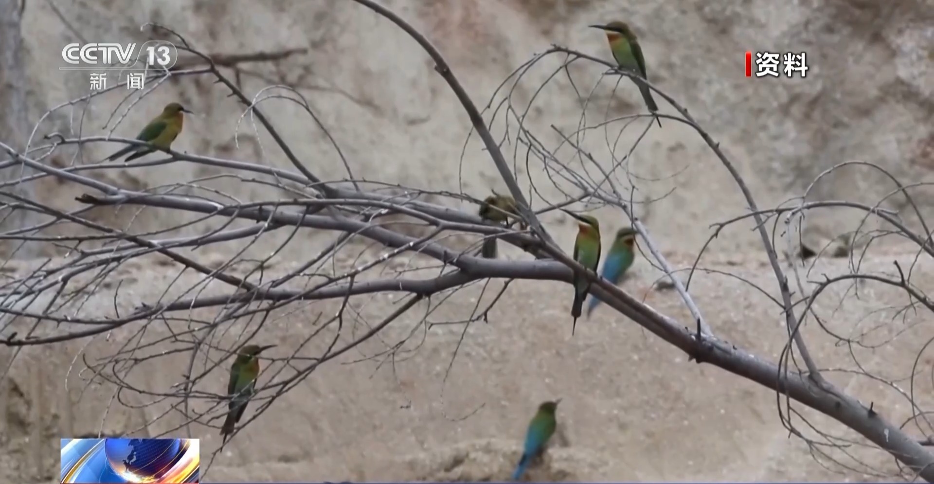 总台记者 赵晟萱:我现在就在五缘湾栗喉蜂虎自然保护区内,每年的4月10日左右,栗喉蜂虎的先头部队都会到达这里,在这一片峭壁上面安家筑巢。因为栗喉蜂虎非常喜欢在新土上安家,所以每年工作人员都会赶在它们来之前对这片巢区进行清理。旁边的这棵枯树,是工作人员专门种植在保护区内的,因为枯树它周围比较裸露,可以给栗喉蜂虎提供一个非常好的站立点,方便它们去观察四周以及观察它们的猎物。