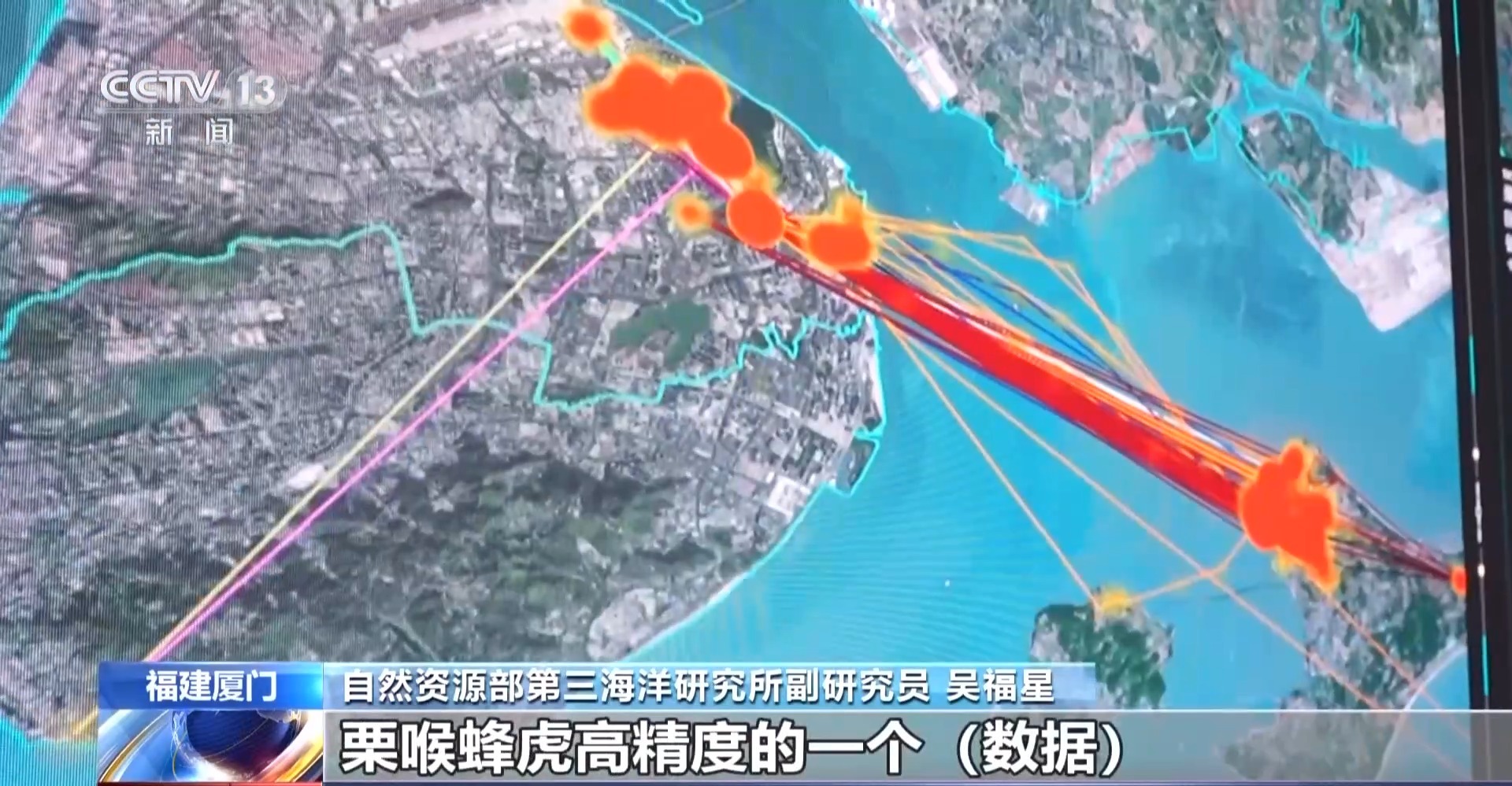 自然资源部第三海洋研究所副研究员 吴福星:基于卫星追踪的结果,我们首次获取了栗喉蜂虎高精度的数据。我们可以清晰地看到,在金门繁殖的一些栗喉蜂虎个体经常跑到厦门来“串亲戚”。