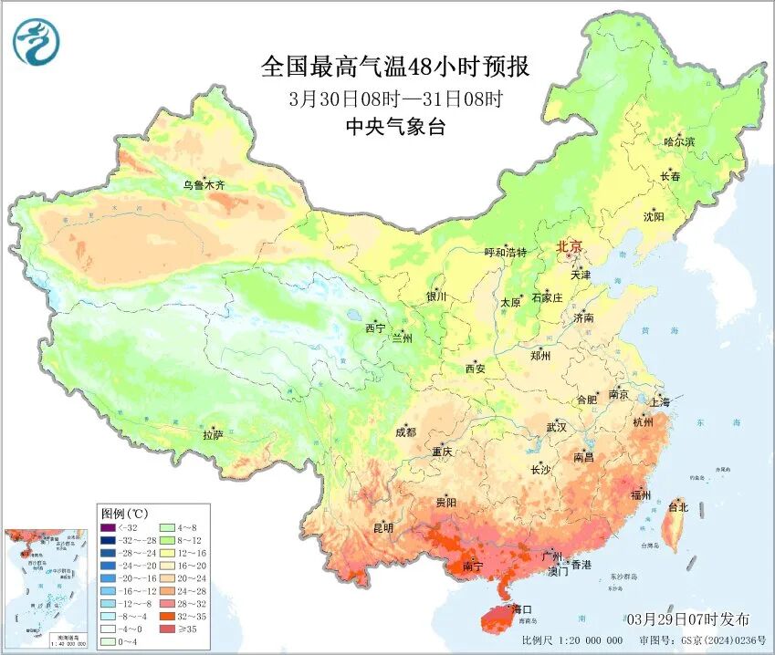 未来三天,南方虽然多雨,多地气温仍明显偏高,华南多地最高气温接近或达到30℃,海南高温天气有所增多,省会海口30日至31日或迎来高温“两连击”,需注意防暑。