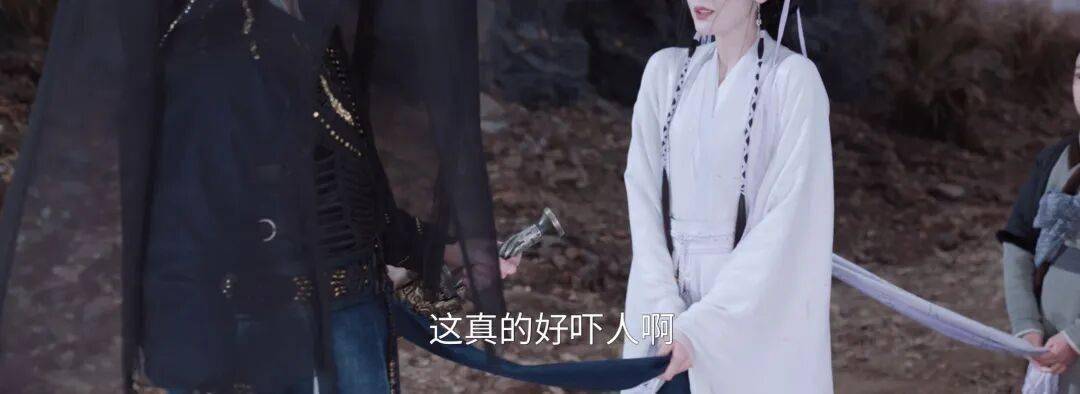 再加上服化道也莫名其妙,给本就毫无逻辑的情节疯狂倒油:在整条河都被冻上的寒冬时节,女主全妆穿一身雪纺纱并饰品,在被屠城后幸存的一群粗衣百姓间扮平民装可怜,真是没有一秒能相信这个剧情。这种不可信还是全方位多层次的:1️⃣俩角色看起来完全不相信对方,也不在乎对方相不相信自己,但自己还是要装下去;2️⃣俩演员看起来既不相信剧情,也没相信对方的表演,但自己还是要强撑着演下去;3️⃣而我就冷眼看着荧幕里这俩人在那耍花枪,信这剧情和人物不如信我是秦始皇。