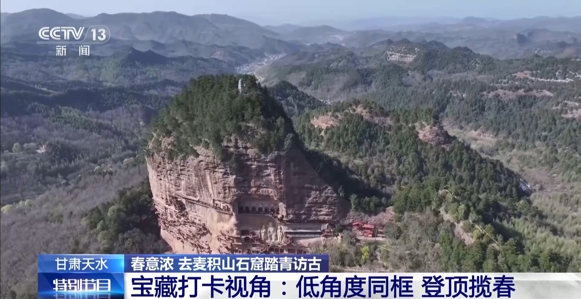 来麦积山石窟游玩,推荐两个公认的打卡视角: