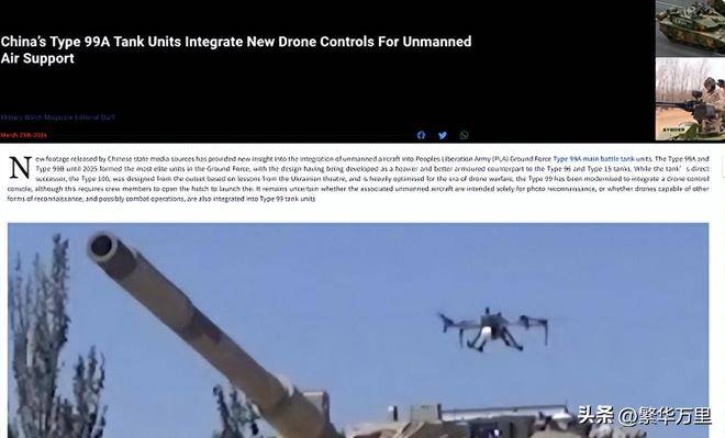 100式坦克的一些先进技术,正好能够应用到99A式和96A式主战坦克的改进中。例如,在2026年3月,网络上出现了96A式主战坦克加装主动拦截系统的相关视频,这些视频展示了现役96A式坦克在中期阶段进行的技术提升。而近期,美媒也报道,解放军的99A式主战坦克正在进行类似的技术升级。考虑到99A式坦克的重要地位,它的升级改进工作可能会更加全面和完善。除了加装主动防御系统外,99A式坦克还将与无人机系统进行配合,进一步增强其战场感知能力和周边区域的掌控能力。近年来,无人机在各大冲突中的作用已经显著提升,无论是俄乌冲突,还是美国与伊朗的对抗,双方都投入了大量的无人机,显示出无人机在现代战争中的重要性。99A式坦克搭载无人机,不仅可以大幅提升坦克的态势感知,还能更好地把控战场局势。