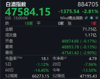 在龙头茅台提价的带动下,上周Wind白酒指数一度反弹近2%,但在周五大幅回调后,该指数最终周跌1.12%,以47584.15点报收。